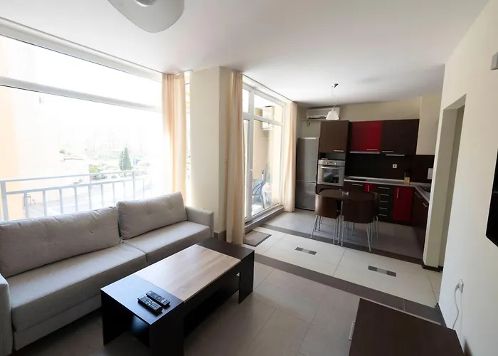 The spacious 64 m^2 Reina Apart Kamelia Garden Sunny Beach apartment is just 1.1 km from Iceberg Party Club and offers a patio with a swimming pool. Located nearly 20 minutes' walk from Action Aquapark, the 1-bedroom apartment overlooks the garden.